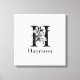 Gray and Black Floral Monogram Letter H Custom Canvas Print