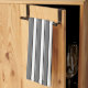 Kitchen towels with gray stripes in four shades of light, dark and black in a simple, classic background pattern.