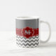 Show off your personal style in a fun way with this dark gray and dark red chevron personalized monogrammed mug.