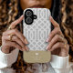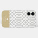 Stylish custom phone case in gray, gold and white colors. This design features a preppy Moroccan trellis pattern. Personalize it with your name monogram or other custom text with a cute heart symbol. Use the design tools to choose any background colors, edit the text fonts and colors and upload your own photos to create a unique one of a kind device cover!