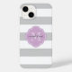 Gray and Lilac Purple Wide Stripes Custom Monogram Case-Mate iPhone Case