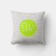 This pillow has a gray chevron pattern in the background with a green circle and a three letter monogram in the center.
