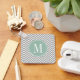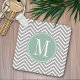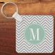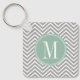 Gray and Mint Green Chevron Pattern with Monogram Keychain