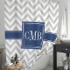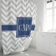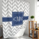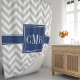 Gray and Navy Blue Chevron Monogram Shower Curtain