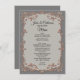 Chic gray wedding table menu with graphics of a peach and ivory colored rose flower garland frame. Lovely addition to your wedding reception tables. Personalize the text for your reception needs.