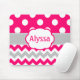 Show off your personal style in a fun way with this gray and hot pink polka dots and chevron personalized mousepad.