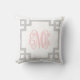 Gray and Pink Greek Key Script Monogram Throw Pillow