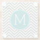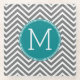 Gray and Teal Chevrons - Custom Monogram Glass Coaster
