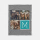 Gray and Teal Square 3 Photo Collage Monogram Fleece Blanket