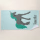Gray and Teal Unicorn Personalized Beach Towel
