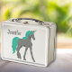 Gray and Teal Unicorn Personalized Metal Lunch Box