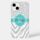 Gray and Turquoise Animal Print Monogram Case-Mate iPhone Case