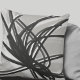 Gray and white throw pillow features an artistic abstract ribbon composition with shades of gray with white accents on a light gray background. This abstract composition is built on combinations of repeated ribbons, which are overlapped and interlaced to form an intricate and complex abstract pattern. The light and dark charcoal gray colored accents are layered and and interspersed to give perspective and depth; design elements that compliment the lighter gray background. Inspired by the lotus flower, this abstract throw pillow is reversible. Gray and white artistic design on front; solid light gray on back.