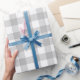 A wrapping paper designed with a gray and white check plaid pattern in large size. Customize the white background among other options.