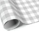 A wrapping paper designed with a gray and white check plaid pattern. Customize the white background among other options.