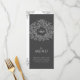 Dark charcoal gray and white wedding dinner menu. Edit this 4 course menu with your own meal option wording. Simple yet modern hand drawn leaves and monogram design. © Original drawing and design by Sarah Trett for www.mylittleedenweddings.com exclusively on zazzle.