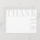 Subtle gray and white typography feels modern and fresh in a unique and striking layout that literally pushes the borders of the page. A blank back side leaves ample space for a thoughtfully hand written note of thanks.