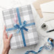 A wrapping paper designed with a gray and white plaid pattern in large size. Customize the white background among other options.