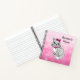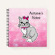Cute hand drawn cartoon cat that is gray and white with a pink bow personalized notebook. Cute gift for a little girl or a teen.