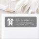 Elegant return address labels featuring a white town house image with a heart on a gray background. Template fields for your name and address.