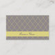 Gray and yellow argyle decorates this stylish business card. Customize the card to suit your needs, add or delete information etc...Use these business cards for a business, hair stylist, shop, golf course, golf pro, landscaping, lawn care, tutor, stylist, consultant, planner, coordinator, teacher, child care, cosmetologist, makeup artist, designer, barber, salon, hair salon, spa, accountant, attorney. lawyer, restaurant, boutique, etc...The design is from original art.