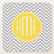 Gray and Yellow Chevrons Custom Monogram Square Paper Coaster
