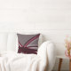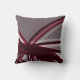 Gray and burgundy throw pillow features a modern artistic abstract design with shades of burgundy and gray with white accents on a gray background. This abstract composition is built on combinations of repeated ribbons, which are overlapped and interlaced to form an interesting artistic design. The gray, burgundy, white and wine colored accents are layered and and interspersed to give perspective and depth; design elements that compliment the lighter gray background. One design of a coordinating set.