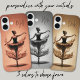 She makes a splash! This beautiful and graceful ballerina dances on the water. Even her ballet dress is made of liquid. This phone case would be perfect for the woman who dances. Easily personalize this case with your initials! There are three colors to choose from in this collection; bronze/brown, rose/pink, and monochromatic black and white.