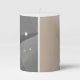 Modern pillar candle features a gray and beige geometric pattern with shades of light and charcoal gray with neutral beige highlights.