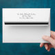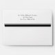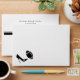 Stylish white football themed envelope, with a solid gray inside and a black and gray stripe on the back flap. Graphics of a black high heel kicking a gray and black football, decorates the left front corner of the envelope. Return address done in black text, on the back flap, is ready to personalize with your information. Great finishing touch to our matching football themed couple's wedding shower invitations.