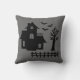 Gray Black Haunted House Creepy Halloween House Throw Pillow