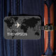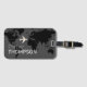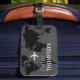 An elegant design with the graphic image of an airplane and a black map on a gray background, to identify your belongings when traveling around the world.