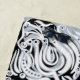 This abstract, four panel tiled, circle, erase, scratch, stretch, manipulation, street art graffiti and airbrush art style design includes the color palette colors of cool warm gray black and white.