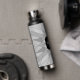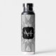 Gray black white Mosaic Triangle Pattern Monogram Water Bottle