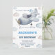 Gray Blue Airplane Birthday Invitations