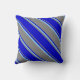 This throw pillow design features a pattern of stripes having colors like gray, blue, and light sky blue.
