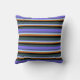 This throw pillow design features a striped pattern having colors like dark slate gray, medium slate blue, turquoise, chocolate, and black.
