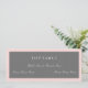 Elegant and minimal wedding plan cards for the top table in white text atop a gray background with blush pink borders.