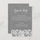 Burlap and Lace Information Card for a Rustic Wedding in gray. Get this card for your country chic wedding and add all the little details for your event. You can edit all of the text and move it any where you like. The back includes a burlap background.