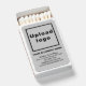 Matchbox with customizable label. Label color is gray. Font color is black. You can customize it to put your business name. You can give it as promotional product to promote your brand name, giveaway item or include it in your gifts to your customers. You can also include it in your marketing materials to advertise your business. Matchbox with your business name in its label to build brand name awareness. To customize the label of this matchbox, upload your business logo, type your business or company name, address, phone number, e-mail and website or social media page. Please check the appearance after uploading logo and typing texts. If the appearance is pleasing to you, you can place your order now. If you need to resize and move the logo and texts to fit in the label and according to your preference, please change in the design tool. You can also make other changes in the design tool such as changing the label color, font color and font style.