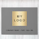 A classic gray background color, black text. Personalize and add your business logo, a text (or delete if not wanted)