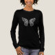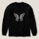 One single gray butterfly is presented on a black tee-shirt, simple and lovely.