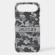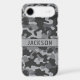 Customize this gray camouflage iPhone 17 air case with your name in a trendy modern CAP font in dark gray on light gray. It's masculine and perfect for your favorite military, hunting, country or outdoorsman!