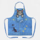 This fun novelty apron includes a faux (printed) denim / blue jean look and includes a cartoon gray kitty cat that appears as if it's sitting inside a pocket! The design also includes "patches" (printed) that resemble the silhouettes of a cat chasing a bird and three paw prints. Use the easy template to add your name or your cat's name to the design (or simply delete the sample name "Tabitha" to order without a name). These cute aprons make the perfect gift for any cat owner! They would also be fun for an animal groomer or vet.