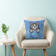 Gray Cat in Faux Denim Pocket with Custom Name Throw Pillow