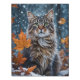 Gray Cat Pose Leaves Faux Wrapped Canvas Print
