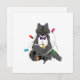 Gray Cat Wrapped In Christmas LIghts Holiday Card