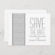 Chic and modern Chevron Border Save the Date Postcard featuring a simple chevron pattern border in gray and white. This stylish design will set the tone for an elegant wedding. Easy to customize, simply add your wedding details in the text fields provided. Click "Customize It" to find more personalization options.