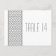 Chic and modern Chevron Border Table Number Postcard featuring a simple chevron pattern border in gray and white. This stylish design will set the tone for an elegant wedding. Easy to customize, simply add the appropriate table number(s) in the text field provided. Click "Customize It" to find more personalization options.
