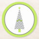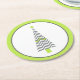 Modern holiday pulp board paper coasters done in white with a lime green and gray border and a gray and white chevron patterned Christmas tree with green accents. Customize to add text or leave as is for a fun addition to your holiday party. Matching invitations and party supplies are available.